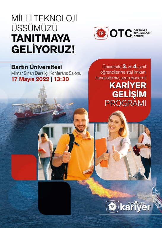 Türkiye Petrolleri Anonim Ortalığın tarafından Fakültemiz öğrencilerine Staj imkanları ve uzun dönemli kariyer gelişim programı hakkında bilgilendirme semineri yapılacaktır. Tüm öğrencilerimizi etkinliğe bekliyoruz.