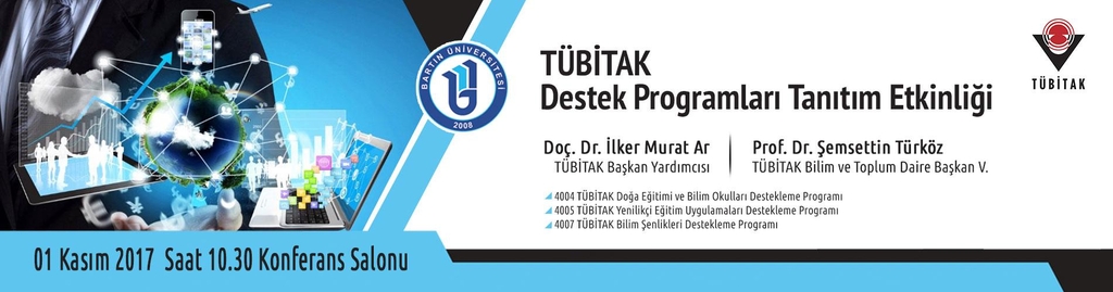 TÜBİTAK Başkan Yardımcısı Doç. Dr. İlker Murat Ar ile TÜBİTAK Bilim ve Toplum Daire Başkan V. Prof. Dr. Şemsettin Türköz 1 Kasım 2017 Saat 10:30'da üniversitemiz konferans salonunda TÜBİTAK Destek Programlarını tanıtacak.